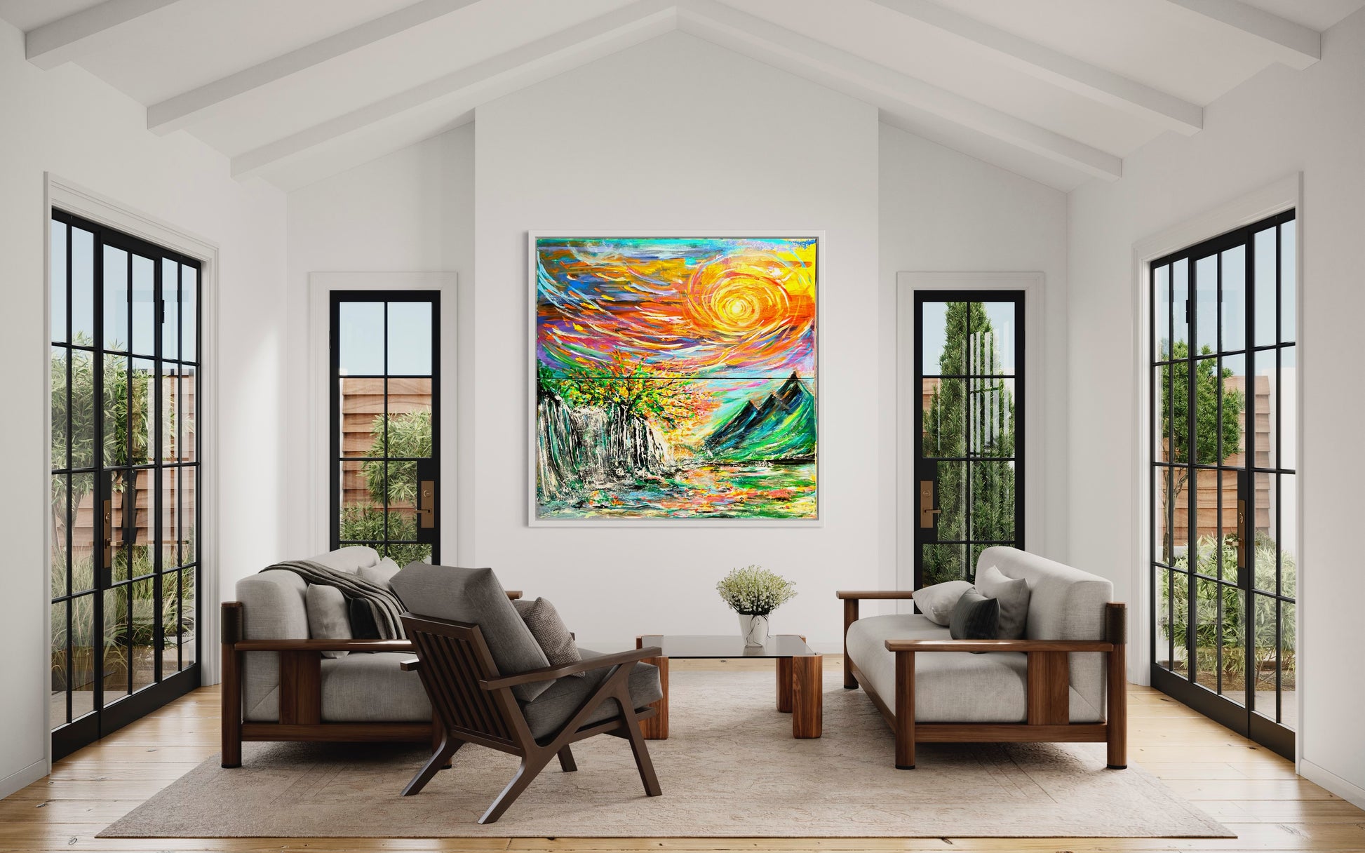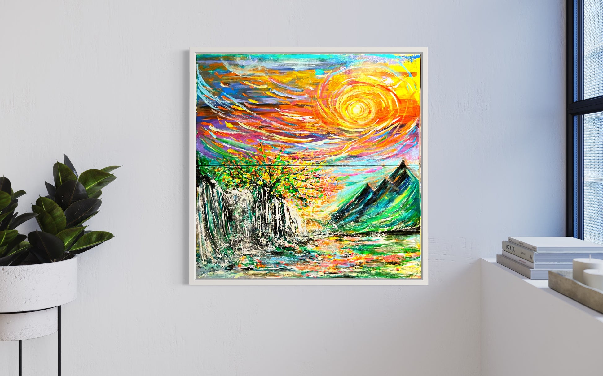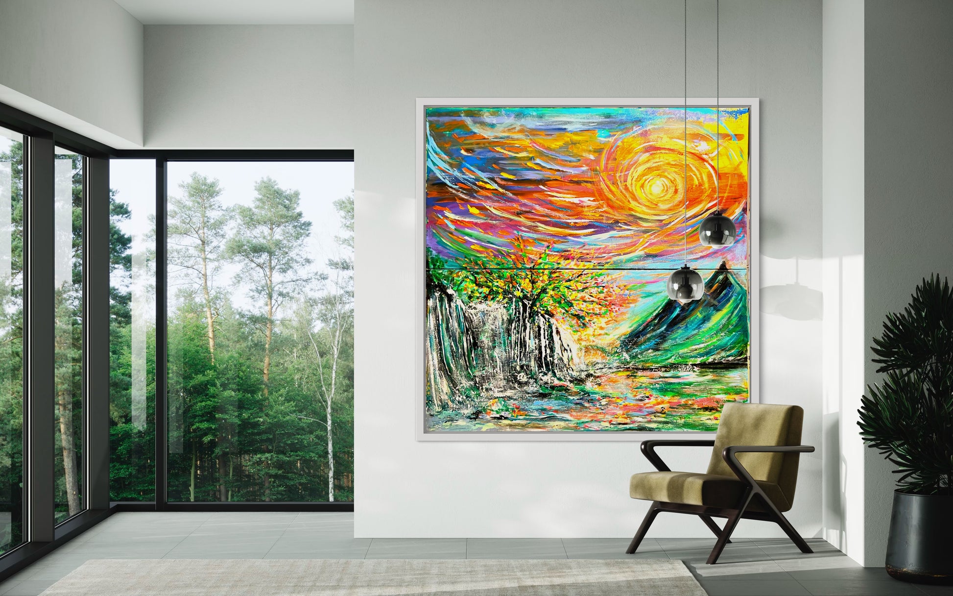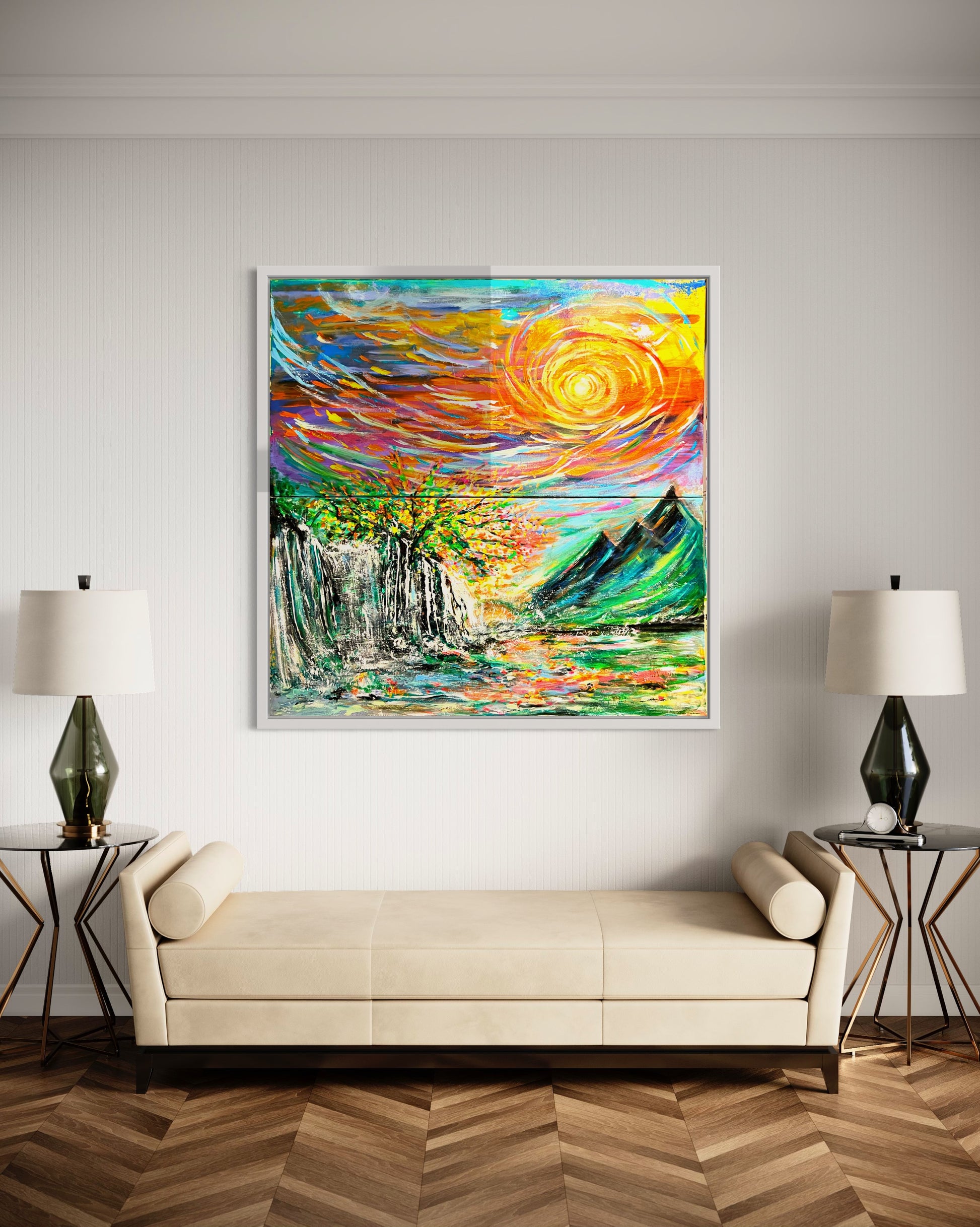 Experience the beauty of nature with "It's all connected" painting. The vibrant colors depict how everything in life is interconnected - from the sky above to the mountains and water below. With its large size, this painting will bring life and inspiration to any space. Let it be a reminder of the true colors of life!