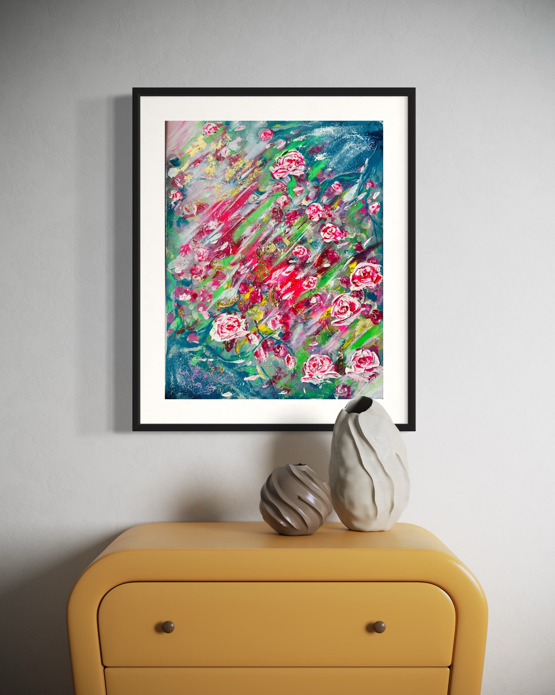 Elegant Zen Rose Impressionist Pink Roses Textured Floral Painting 3D ART