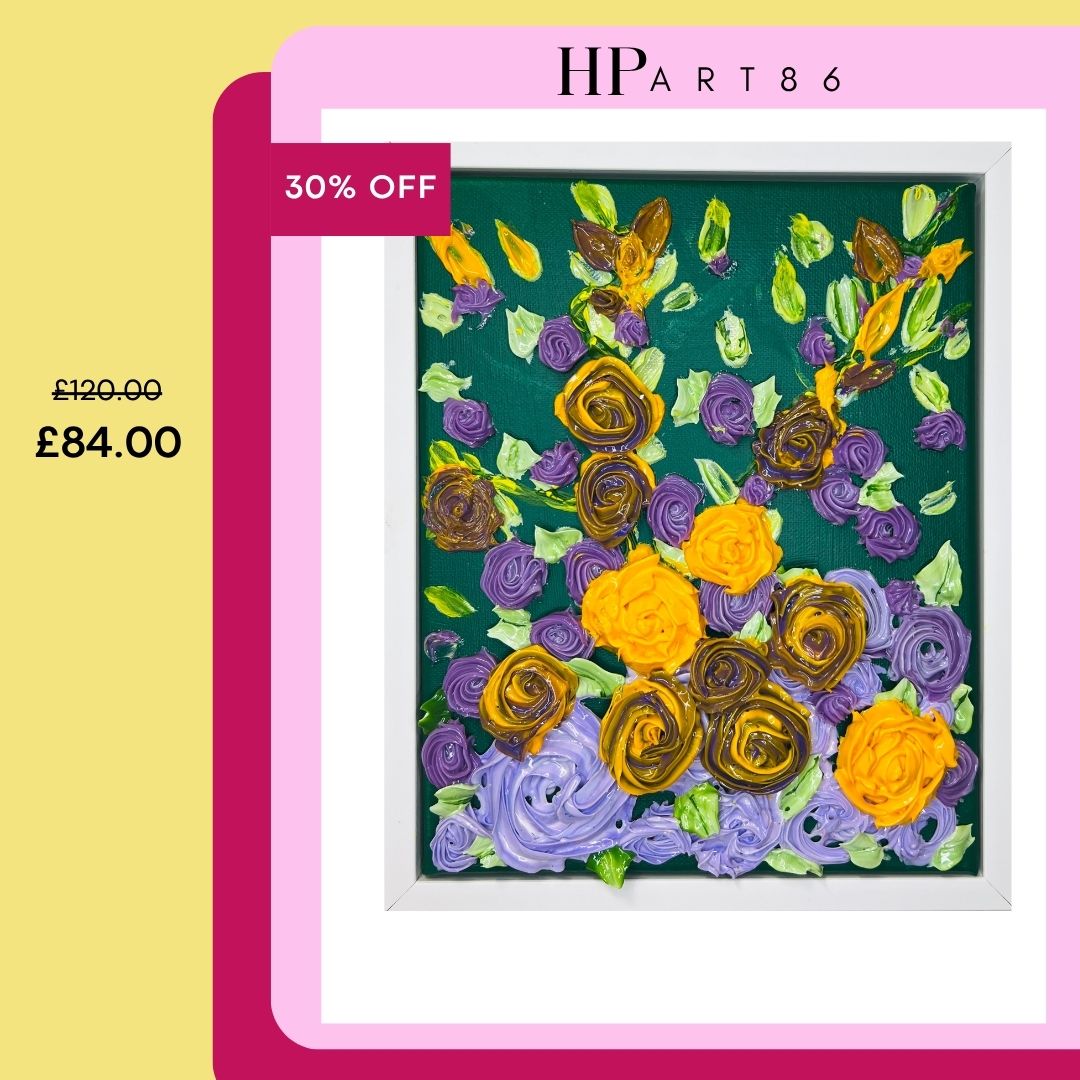 "Experience the beauty of our ROSES TRELLIS canvas featuring stunning 3D effects crafted from thick, textured roses. Perfect for adding dimension to any space."