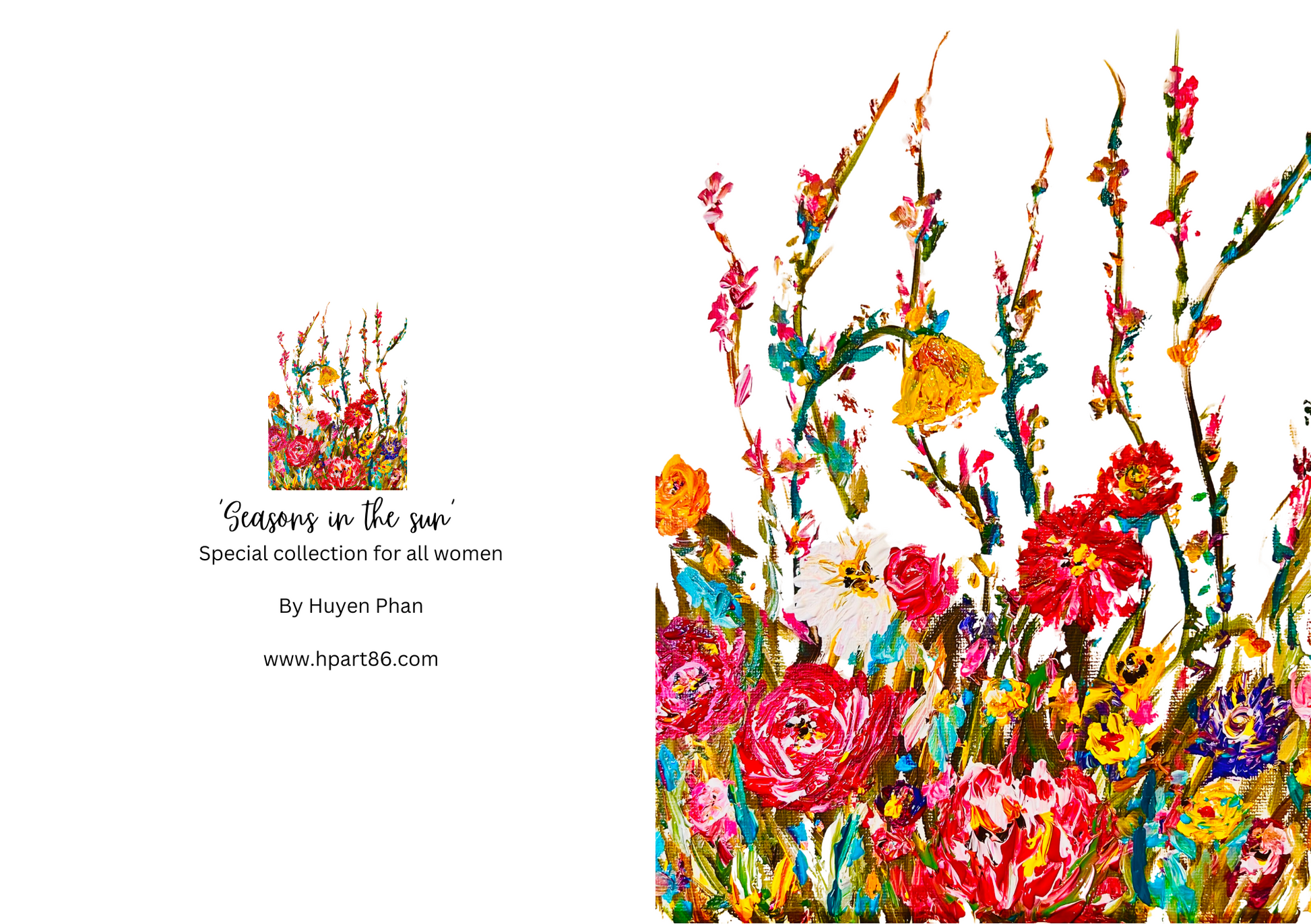 Express your love with our 'SEASONS IN THE SUN' folded card! This beautiful painting features blooming flowers, symbolizing the growth and warmth of your love for that special someone.
