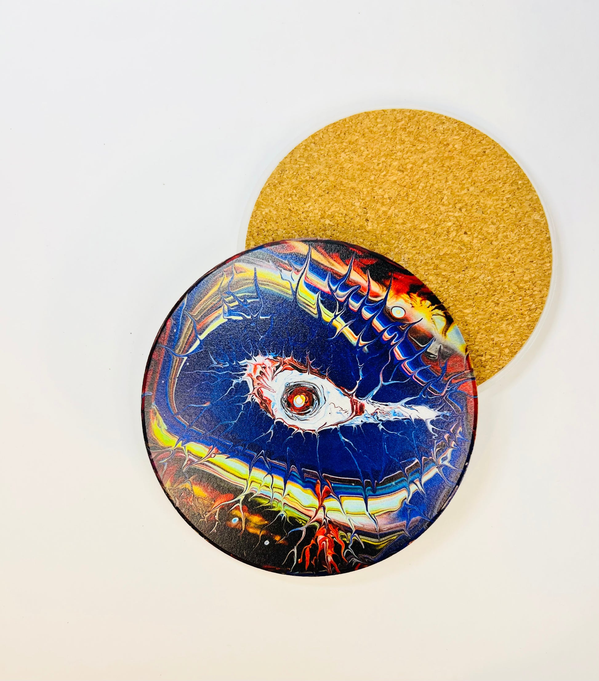 Circle Ceramic Coaster "The Eye" Art Print Hand Painted 10cm