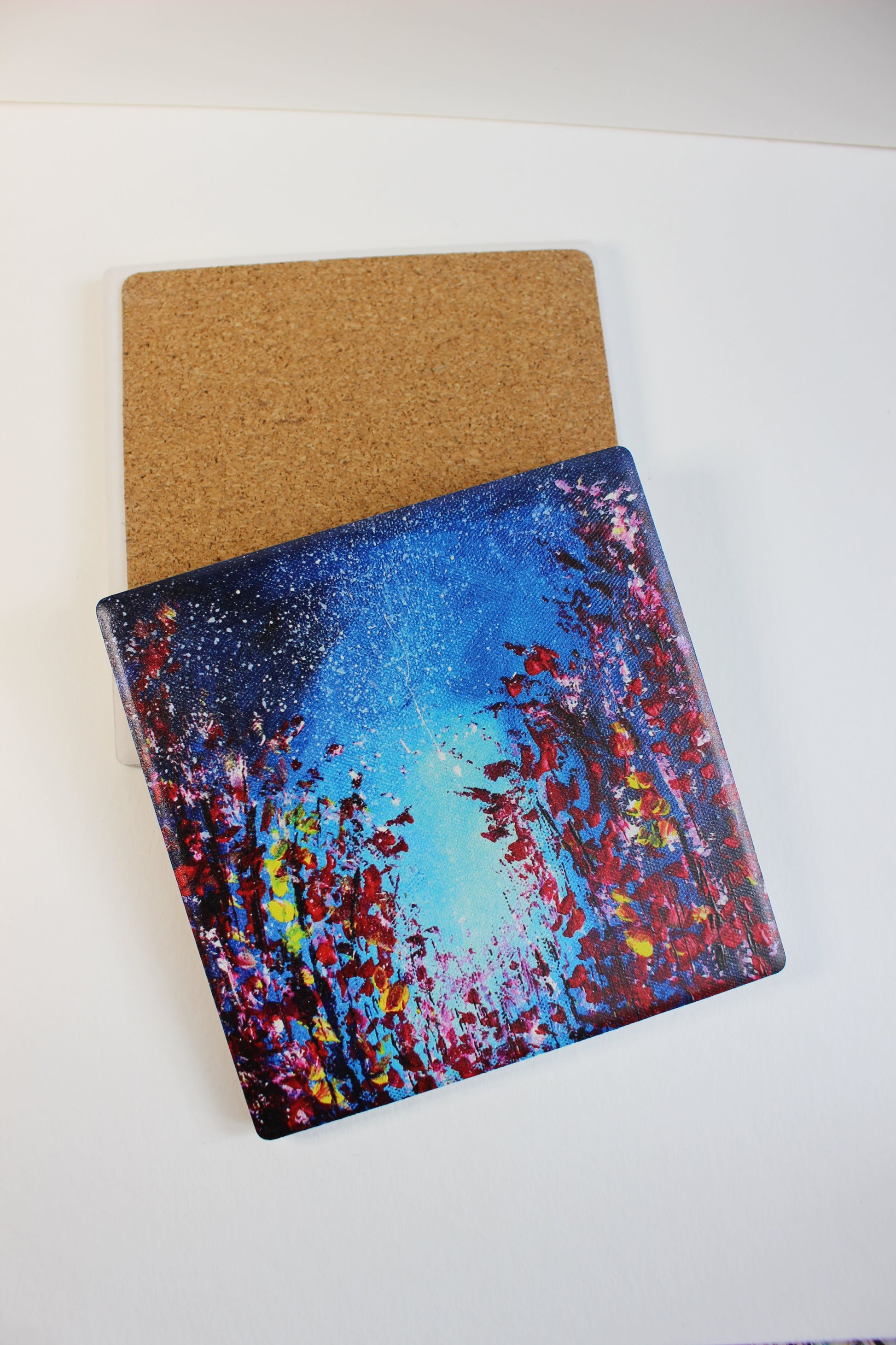 Square Ceramic Coaster "Under Star" Art Print Hand Painted 10x10cm