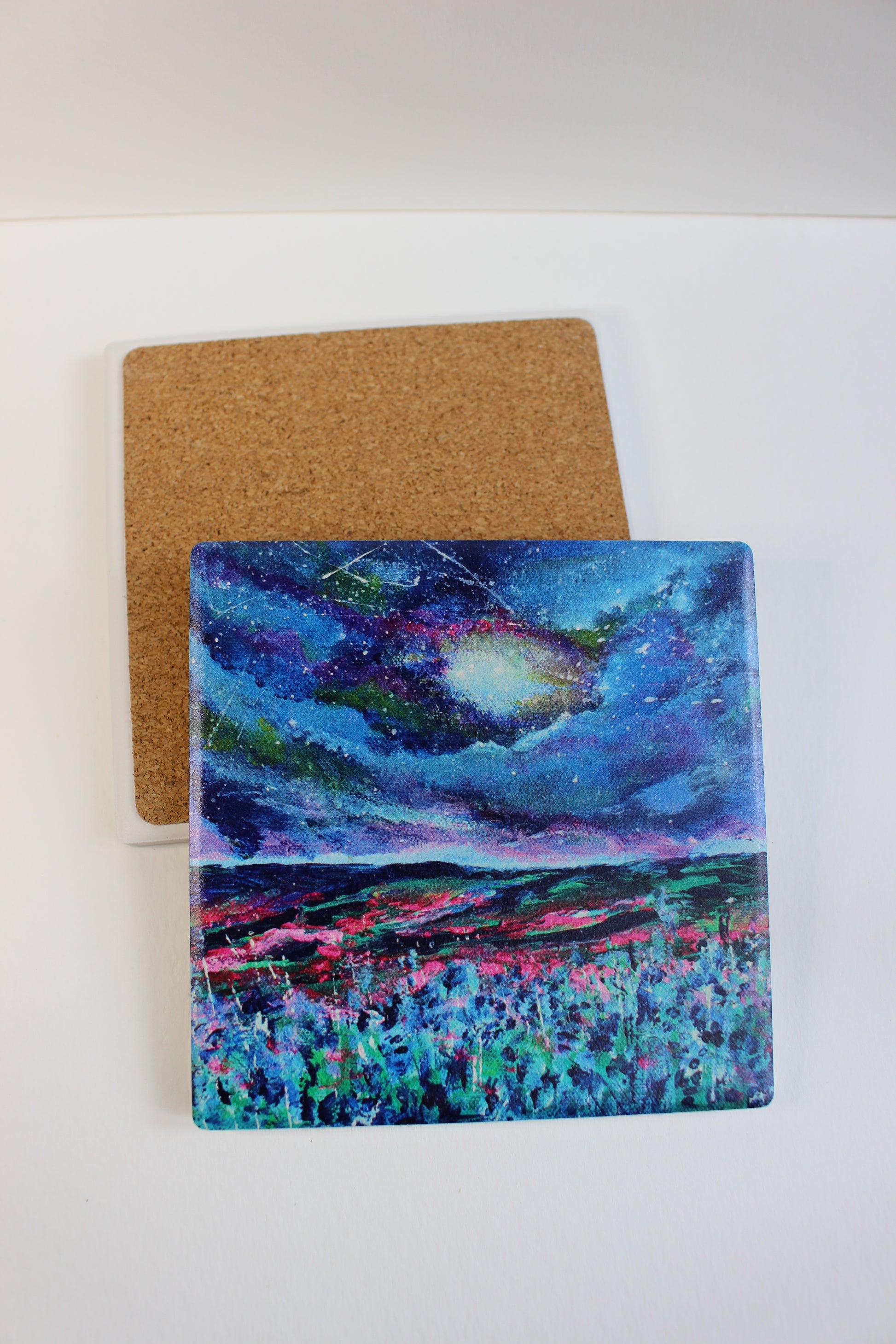 Enhance your home decor with these 10x10cm square ceramic coasters, designed to combine style and functionality. Featuring a smooth ceramic front, each coaster showcases beautifully printed hand-painted artwork, while the cork backing protects surfaces from scratches and moisture. Durable and elegant, these coasters provide a personal touch to your living space while keeping your furniture safe from drink rings. Ideal for everyday use or as a thoughtful gift, they effortlessly blend artistry with practicality.