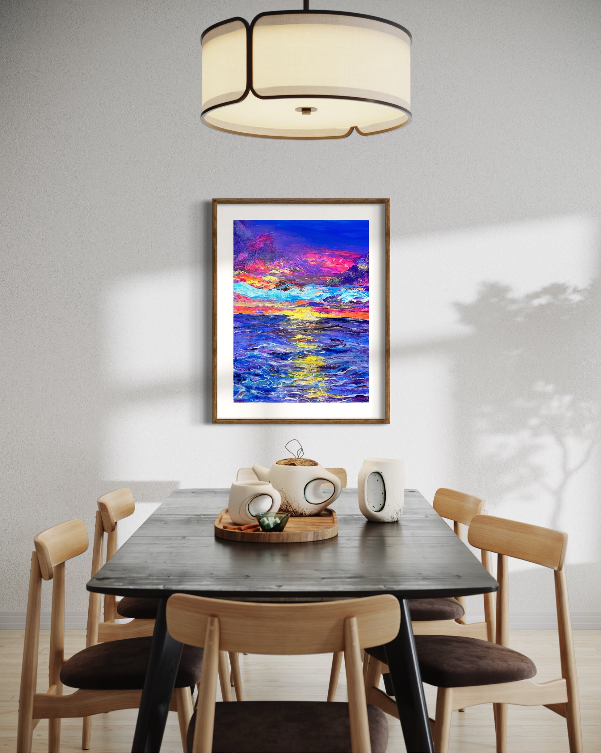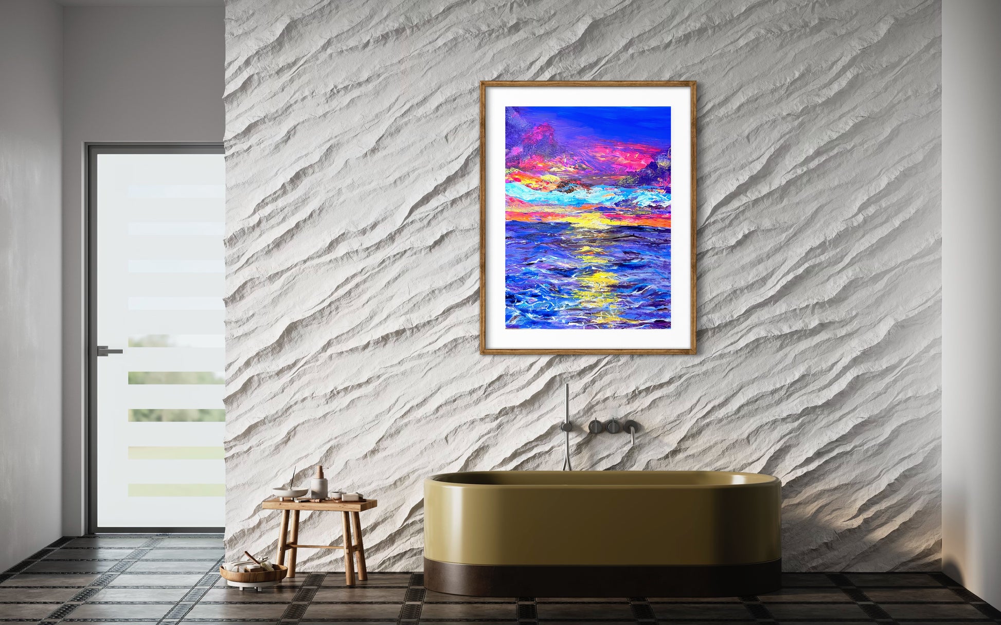 Transform your home with Tranquility's beautiful blend of sky and ocean colors. This excellent home decor piece will bring a sense of calm and serenity to any room. Increase relaxation and create a peaceful atmosphere with Tranquility. Its stunning colors are sure to make a statement and enhance your space.