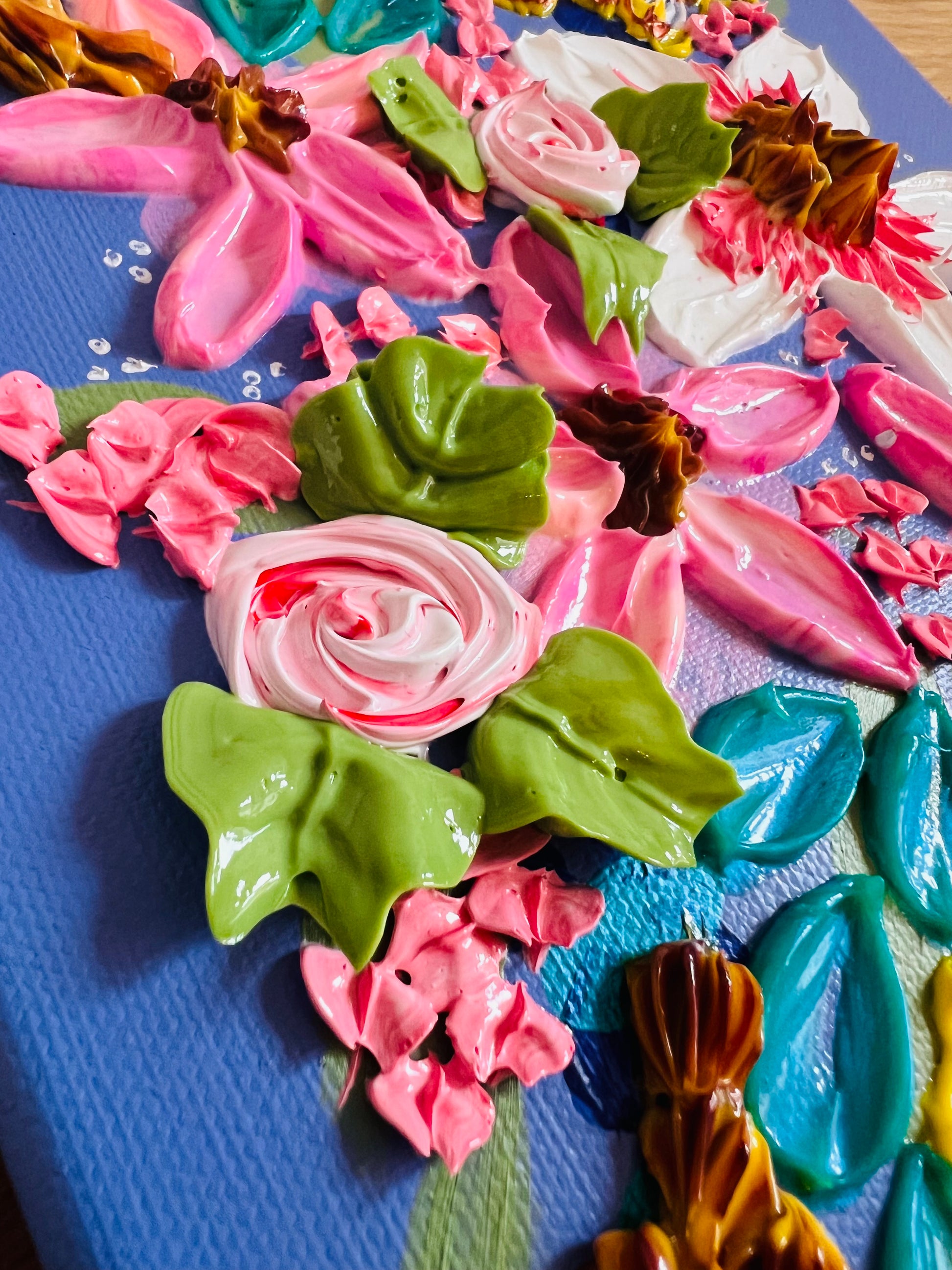 VIOLET GARDEN Framed Heavy textured artwork with Pink background 8x10in